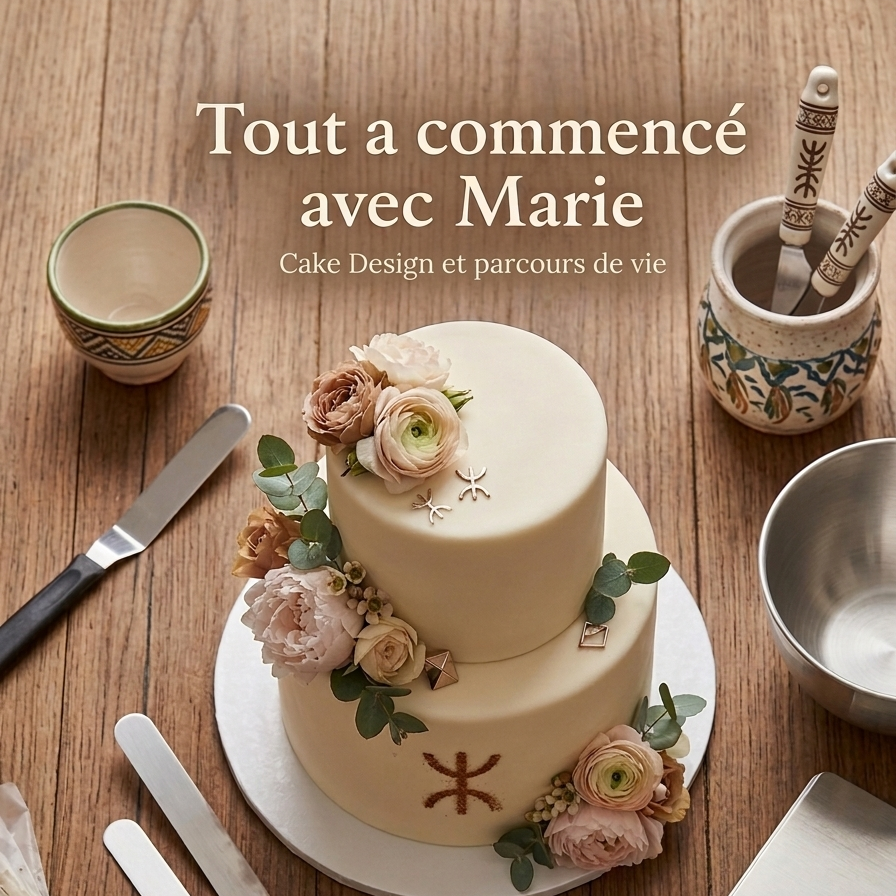 Je l’ai pensé comme un clin d’oeil à mes années de Cake Design, à mes clientes fidèles et à toutes ces créations qui ont marqué ma vie. Tout a commencé avec Marie, une passion qui a tout emporté sur son passage, me menant aux sommets de la création mais aussi aux portes du burn-out.